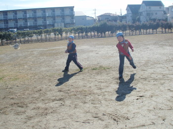 吹き矢を使って肺活量アップ。 一回目より二回目は遠くまで飛ばせたね。